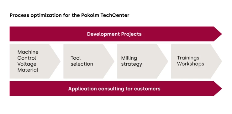 Pokolm's TechCenter supports customers with technologically and economically optimized milling solutions that are tailored to individual needs and can relate to tools, milling strategies, clamping devices, milling machines, CNC controls, or CAM systems.